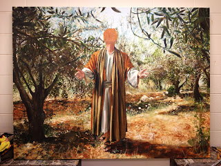 It's been 8 long months since visual progress has occurred. Finding the right model, multiple meetings and discussions on dress, pose, hand gestures, and multiple photo shoots have finally allowed me back into the studio to begin work toward the finished product again. Then end is in sight and my hope is to finish this by the end of this month or next month. The picture you see here is the under painting to lay in and map out the figure.